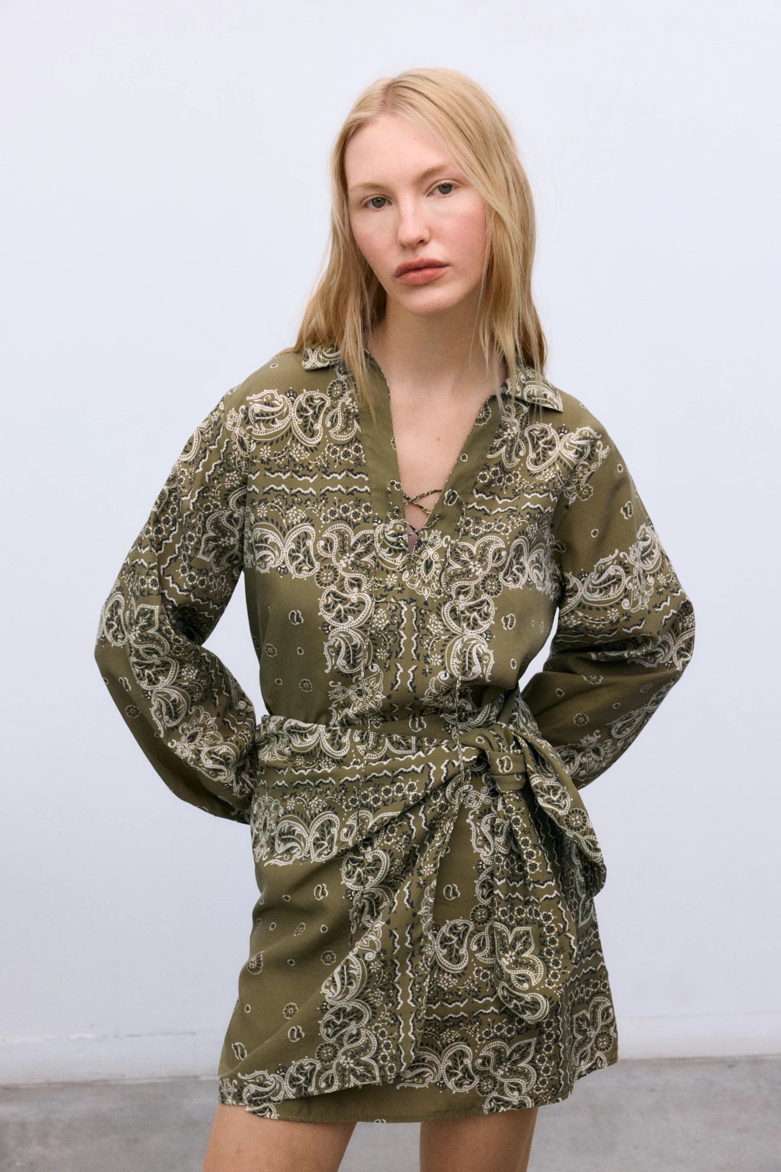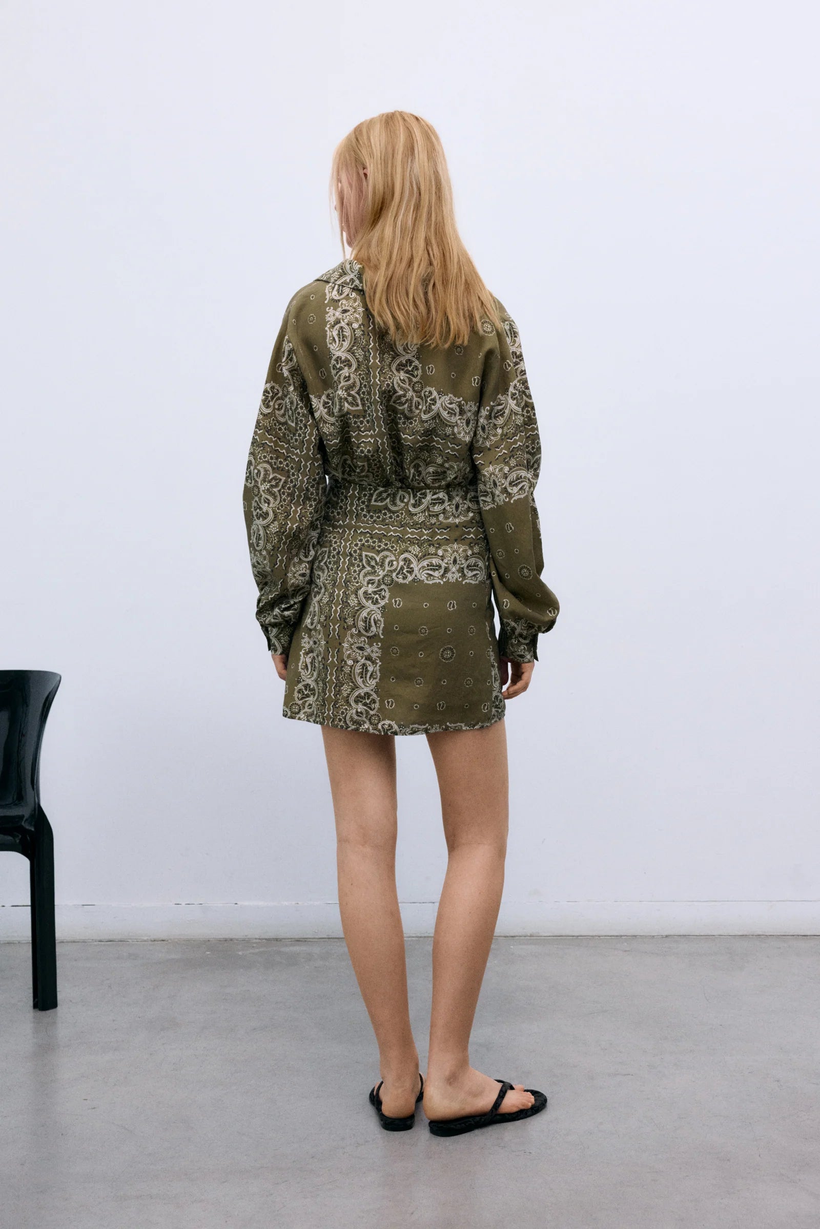 This green patterned blouse on a crisp white background is a refined expression of effortless femininity. Featuring an elegant paisley-inspired print, it blends timeless design with a fresh, contemporary feel, making it a versatile piece for both everyday wear and more elevated occasions.